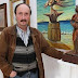 | El referido mural, tras el pintor coruñés Marcos Real que posa con el escultor lucense Paco Pestana el día en que aquel inauguró en El Cercano en Mayo pasado |