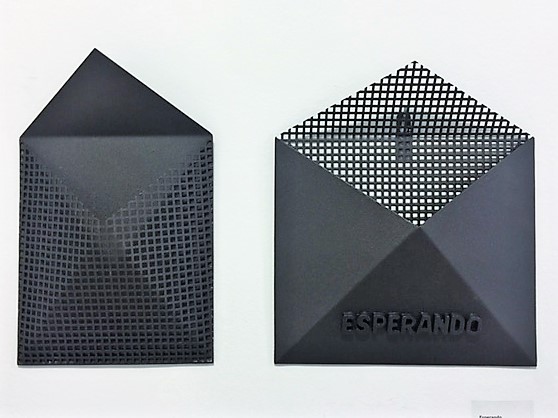 Los sobres que coloca en las paredes, evocan noticias, haciéndonos pensar en una casa habitada, domicilio para unas personas, morada para otras, remitiéndonos a una presencia humana relacional. Las novedades van, o llegan, se mueven desde la escritura en el papel de la tarjeta postal, apenas un pequeño espacio para decir, con mensajes escritos en los soportes, sonho / viagem, segredo / desvendado, dípticos sutiles como ráfagas-secuencias que se explican por oposición o como un continuum. En memorias /cheguei, hace una concesión a la historia al incluir un sello con 'Santa Isabel Raínha', y el precio en escudos, elemento que nos conecta el pasado reciente. La ruptura de la armonía de la serie queda compensada por el significativo enriquecimiento iconográfico.